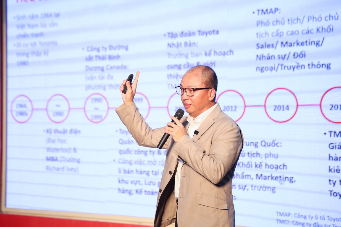 Tại chương trình, Ông Tiền Quốc Hào đã chia sẻ cùng các bạn sinh viên Nhà trường về cuộc đời và sự nghiệp của mình cũng như Triết lý và văn hóa Toyota, Định hướng trung hòa Carbon của Tập đoàn Toyota. Các bạn sinh viên đã nhận được nhiều thông tin giá trị và quý báu, hiểu rõ hơn về định hướng phát triển của một tập đoàn lớn như Toyota cũng như những đóng góp bền vững cho xã hội, và từ đó có thể rút ra nhiều bài học cũng như định hướng tương lai của bản thân mình. Cũng trong khuôn khổ chương trình, các bạn sinh viên đã được Ông Nguyễn Ngọc Tú - Trưởng Ban Nhân sự, Toyota Việt Nam chia sẻ Môi trường làm việc và chính sách Tuyển dụng tại Toyota Việt Nam. Chương trình khép lại với phần giao lưu hỏi đáp sôi nổi giữa các bạn sinh viên cùng các diễn giả. Nhiều bạn sinh viên bày tỏ mong muốn có thêm nhiều hoạt động bổ ích như vậy trong tương lai.