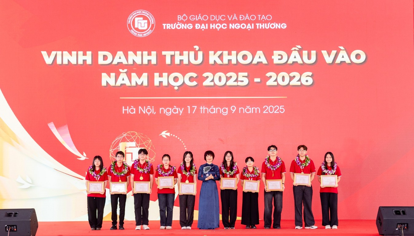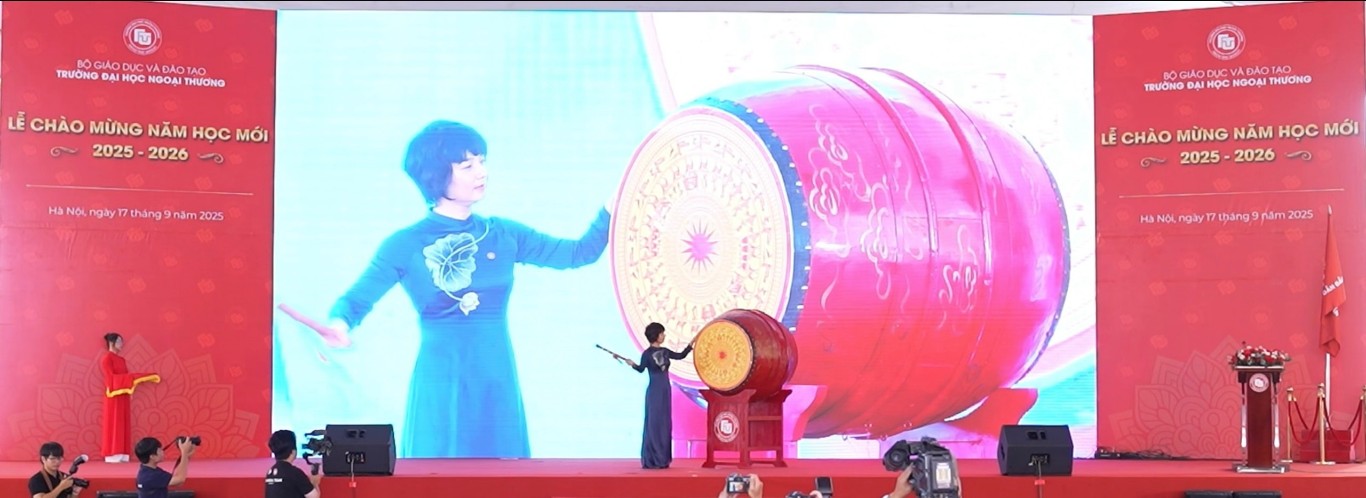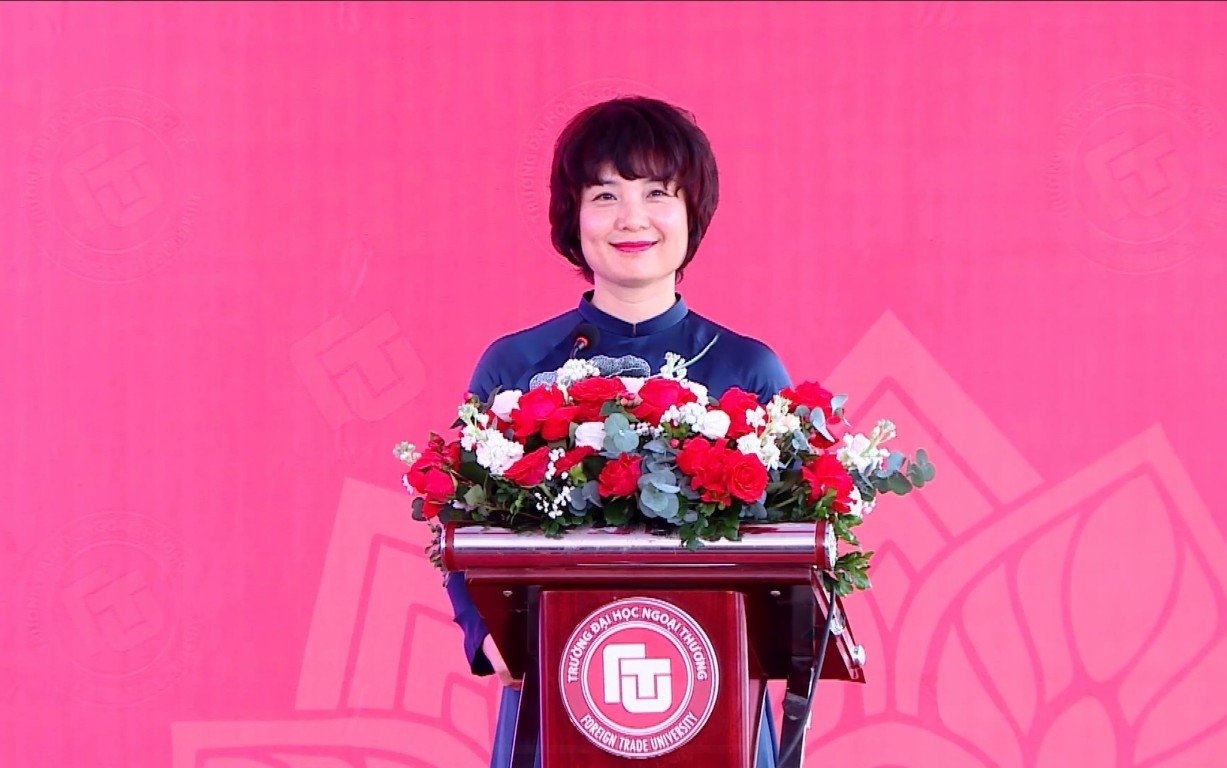 Phát biểu tại buổi lễ, PGS, TS Phạm Thu Hương - Hiệu trưởng Trường Đại học Ngoại Thương nhấn mạnh: “Năm học 2025-2026 là năm học đặc biệt có ý nghĩa quan trọng, đánh dấu chặng đường 65 năm hình thành và phát triển của Trường Đại học Ngoại Thương. Trên hành trình phát triển của mình, Nhà trường đã luôn nỗ lực để xây dựng và phát triển hệ sinh thái giáo dục mở có tính hội nhập quốc tế cao, khuyến khích người học tự do khai phá và phát huy những tiềm năng riêng có, để từng bước bồi đắp 6 giá trị cốt lõi của người Ngoại Thương bao gồm sáng tạo và xuất sắc, trách nhiệm và bản lĩnh, đa dạng và hoà hợp”.