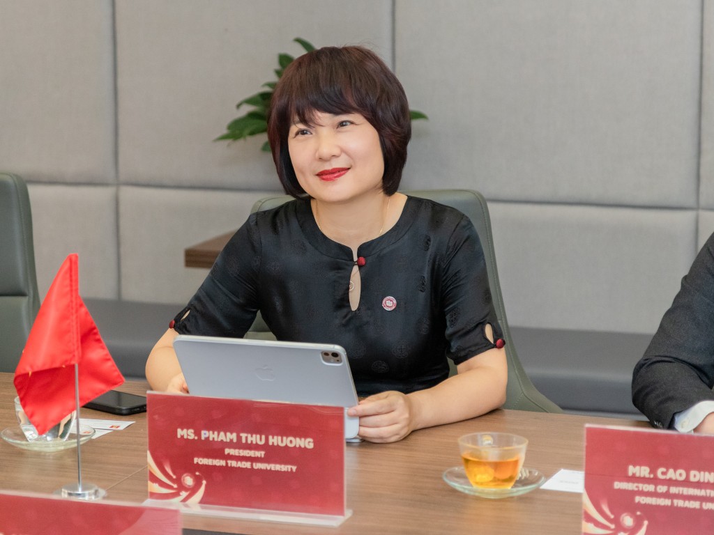 Trong không khí thân mật và cởi mở, Ngài Đại sứ Nicolai Prytz đã gửi lời chúc mừng nồng nhiệt đến PGS, TS Phạm Thu Hương nhân dịp cô chính thức đảm nhiệm cương vị Hiệu trưởng của Trường ĐH Ngoại thương. Ngài Đại sứ cũng bày tỏ niềm vui và sự trân trọng khi biết rằng cô Phạm Thu Hương từng là cựu du học sinh của Đại học Aarhus, Đan Mạch – điều này góp phần tạo nên một mối liên kết đặc biệt và đầy ý nghĩa trong buổi gặp gỡ.