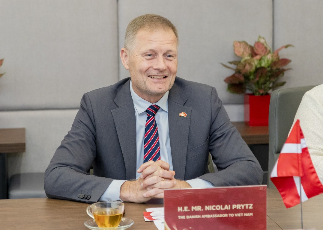 Ngài Đại sứ Nicolai Prytz đánh giá cao định hướng hiện đại và quốc tế hóa của Nhà trường, đồng thời khẳng định Đại sứ quán Đan Mạch sẵn sàng hỗ trợ thúc đẩy kết nối giữa Trường ĐH Ngoại thương với các trường đại học, tổ chức và doanh nghiệp của Đan Mạch. Đặc biệt, Ngài Đại sứ bày tỏ kỳ vọng về việc tổ chức các hội thảo chuyên đề, tọa đàm học thuật và chương trình giao lưu sinh viên giữa Ngoại thương và các cơ sở giáo dục Đan Mạch, nhằm nâng cao sự hiểu biết lẫn nhau và tạo nền tảng cho những hợp tác sâu rộng hơn trong tương lai.